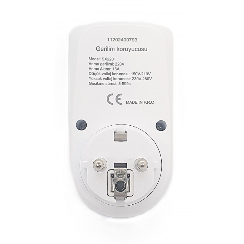 Voltaj Koruma Fonksiyonu: Cihaz, şebeke voltajının belirli limitlerin (genellikle ayarlanabilir üst ve alt sınırlar) dışına çıkması durumunda bağlı cihazın elektrik beslemesini otomatik olarak keser. Bu, özellikle ani voltaj yükselmeleri (pikler) veya düşmeleri (çöküşler) gibi durumlarda cihazlarınızın zarar görmesini engeller.