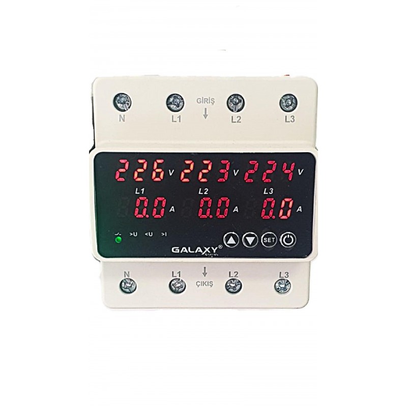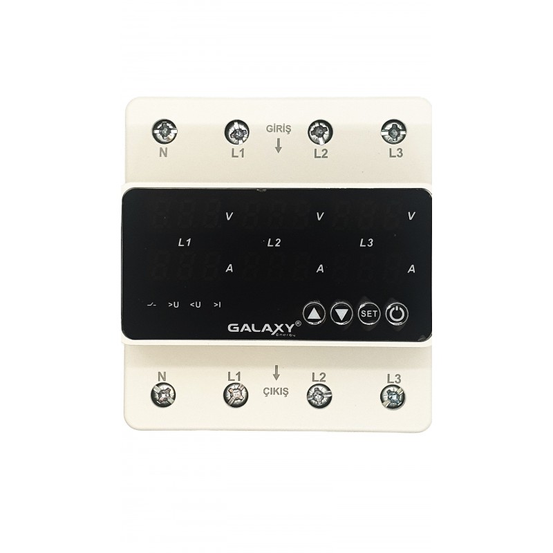 Trifaze Voltaj Koruması: Üç fazlı (R, S, T veya L1, L2, L3) elektrik sistemlerinde her bir fazın voltajını ayrı ayrı izler. Bu, monofaze cihazlara göre daha kapsamlı bir koruma sağlar. Voltajın belirli limitlerin dışına çıkması durumunda (ayarlanabilir üst ve alt sınırlar) veya fazlar arası dengesizlik durumunda bağlı ekipmanın elektrik beslemesini otomatik olarak keser.